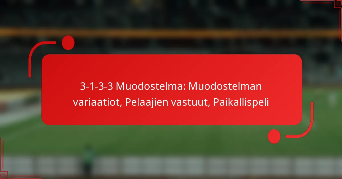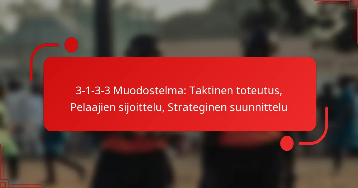 3-1-3-3 -muotoilu on jalkapallon taktinen asettelu, joka tasapainottaa vahvan keskikentän luotettavan puolustuksen kanssa. Siinä on kolme puolustajaa, yksi puolustava keskikenttäpelaaja, kolme keskikenttäpelaajaa ja kolme hyökkääjää. Tämä muotoilu ei ainoastaan mahdollista hyökkäysjoustavuutta, vaan myös varmistaa puolustuksen vakautta, sillä jokaiselle pelaajalle on annettu erityiset vastuut, jotka parantavat joukkueen dynamiikkaa ja kenttäkatetta. Keskittymällä optimaaliseen väliin ja sijoittumiseen joukkueet voivat luoda tehokkaita syöttöväyliä ja helpottaa sujuvia siirtymiä puolustuksesta hyökkäykseen.